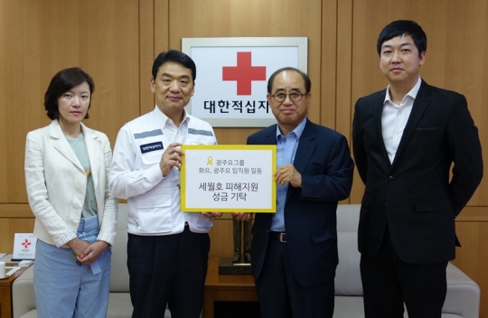 광주요 그룹(대표 조태권)은 화요와 광주요 임직원들이 12일 대한적십자회 서울지부를 방문해 세월호 피해지원 성금을 기탁했다고 13일 밝혔다.